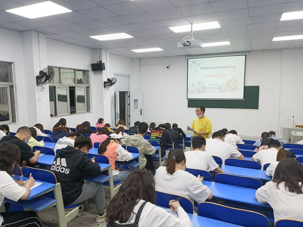 我院副院长徐小军为本次比赛致辞,他希望赛本着公平公正的原则,赛出水平赛出风格,并期待大赛取得圆满成功。药学教研室洪江老师为参赛学生介绍了比赛流程和规则。药学教研室所有教师作为评委参与本次决赛。