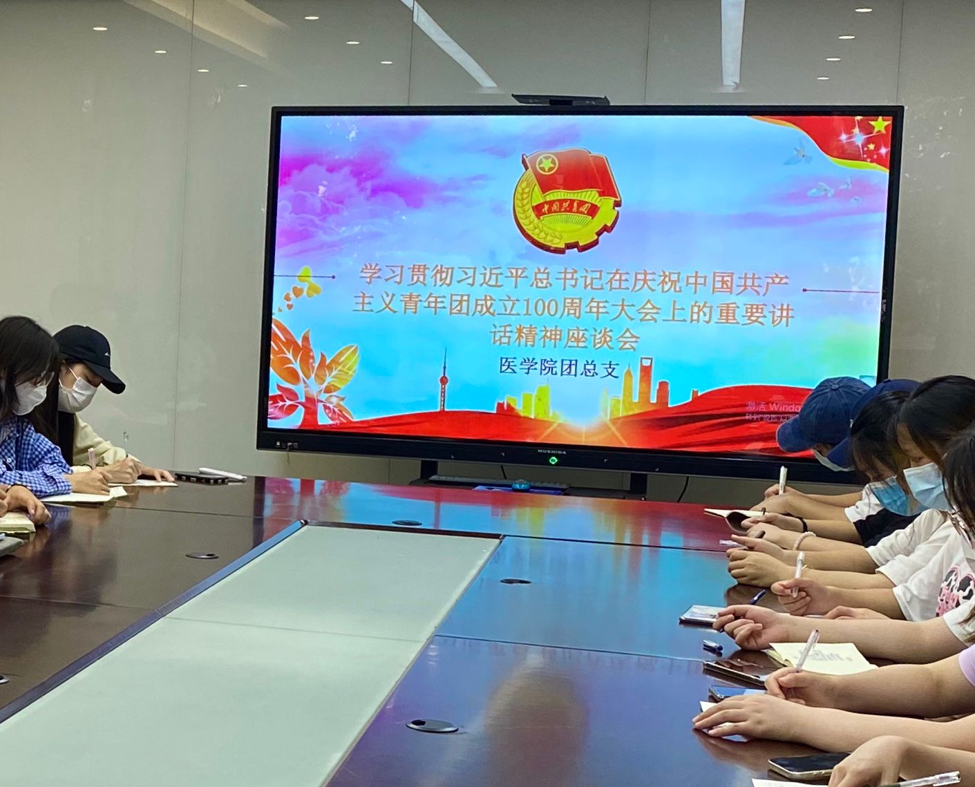 医学院团总支于2022年6月1日中午12:30在四号楼三楼会议室召开了学习贯彻习近平总书记在庆祝中国共青团成立100周年大会上的重要讲话精神座谈会,出席本次会议的有医学院团总支书记游潇以及医学院部分团学干部、医学院青年志愿者代表。