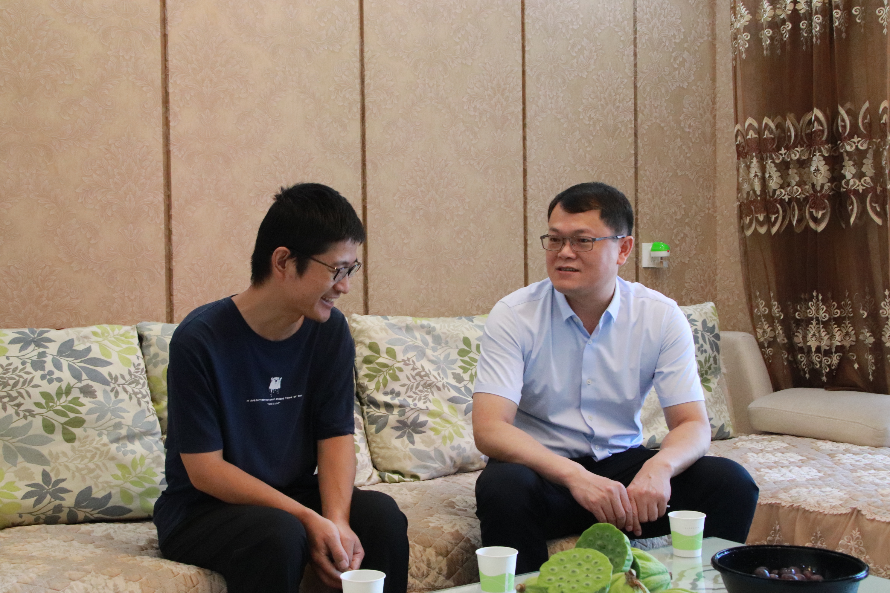 在胡老师家,何保华校长与胡小杰亲切交谈,关切地询问老师的身体状况、治疗进展和生活情况,并鼓励胡老师树立信心,保持乐观向上的心态,积极配合医护人员的治疗,争取早日康复。
