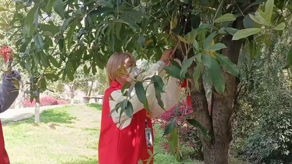 植树现场,志愿者们详细向大家讲解植树要领和技巧。同学们热情饱满,三五人一组,扶树整面,挥锨培土,堆垒围堰,确保树苗栽种一棵、成活一棵。在植树场地周围,同学们捡拾垃圾,清理杂草,各个环节衔接有序,整个现场呈现出一派热火朝天的繁忙景象。植树完成后,同学们将事先领取的小卡片挂在树枝上并写上自己的梦想,让自己的梦想与树木一起茁壮成长。