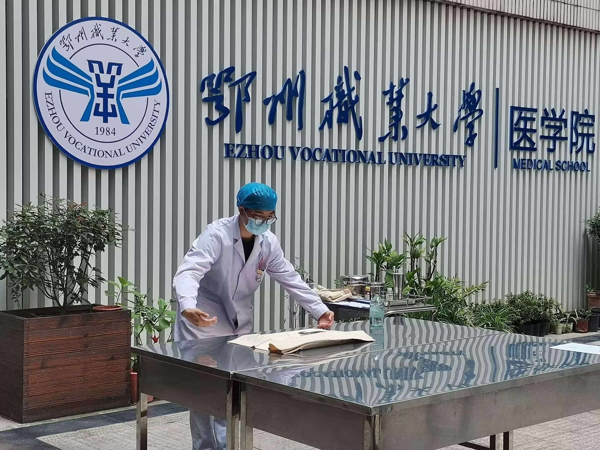 为深入贯彻党的二十大精神和习近平总书记关于职业教育的重要指示和《关于深化现代职业教育体系建设改革的意见》,大力宣传我校职业教学发展结果,展现我校师生“厚德自胜,乐学道成”的精神风貌。全面展示我校教育教学改革发展成果,做好湖北省技能大赛的备赛工作,提高选手抗压、临场发挥能力。鄂州职业大学医学院于5月18日下午在医学院一楼平台举办“2023年医学院护理专业综合无菌技能大赛”。