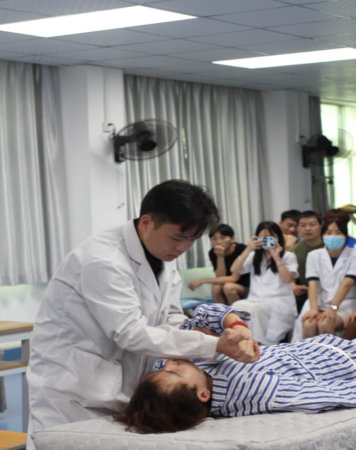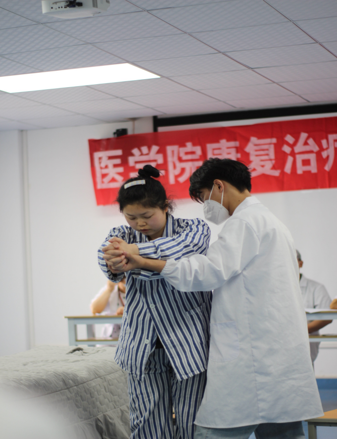 为培养学生临床思维,增强主动学习意识,提高临床实践与创新能力。2023年5月18日,我院成功举办了以“康复逐梦,携手未来 ”为主题的康复技能大赛。本次比赛由21级、22级两个年级共同参与,经过激烈比拼,最终4个小组成功进入决赛。每小组由7位成员组成,分别是:康复医师,康复评定师,物理治疗师,作业治疗师,言语治疗师,传统康复师,模拟病人。