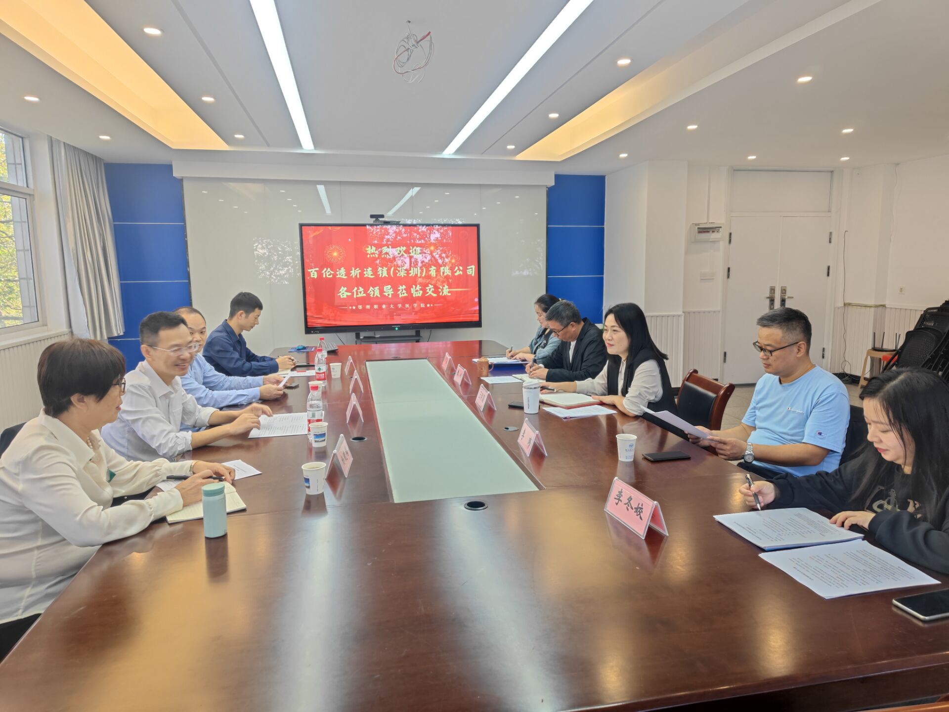 出席此次洽谈会的有百伦透析副总经理曹庆涌、杨小军,护理人才发展总监杨晓梅,人资行政中心副经理刘玉堂,以及鄂州职业大学医学院院长汪艳霞,医学院党总支书记朱兵,医学院办公室主任洪霜,医学院护理教研室主任李冬姣。