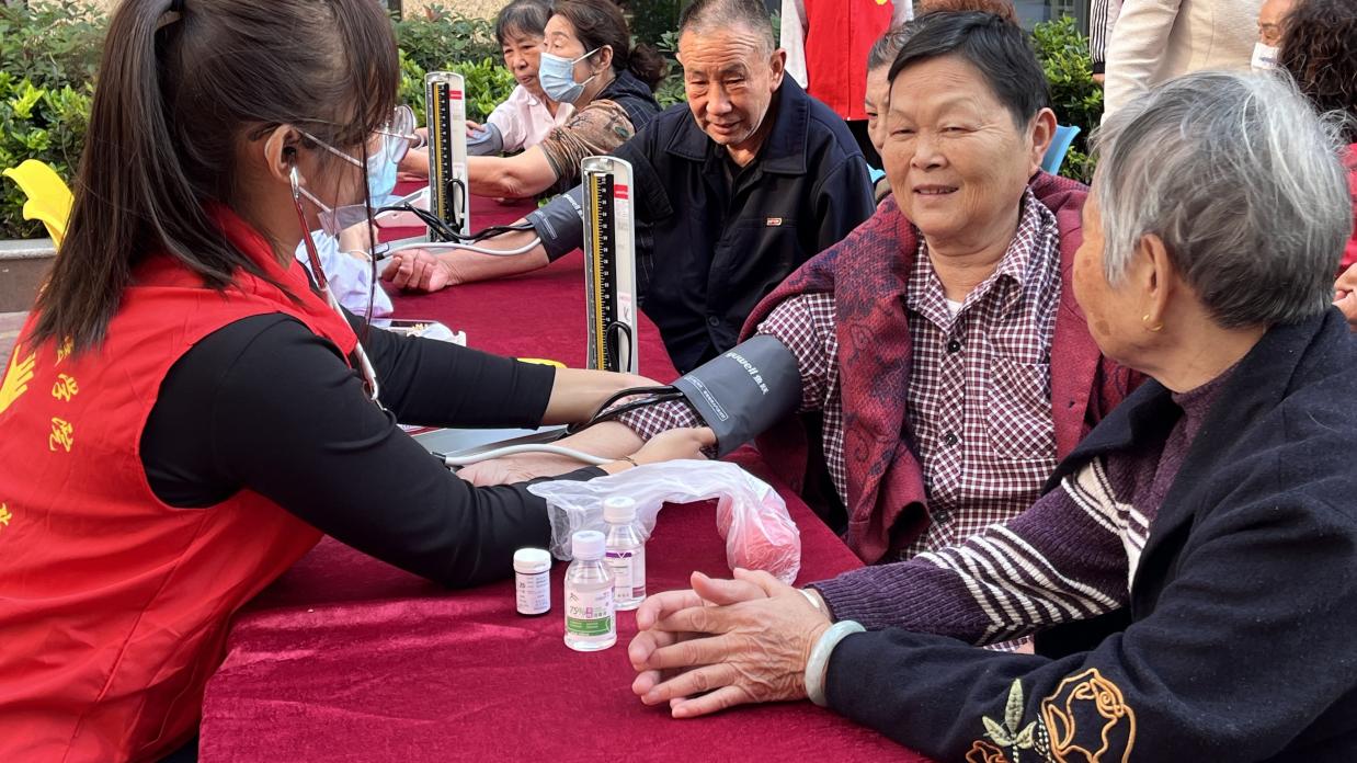 活动现场志愿者们摆上检查设备,为居民们提供免费一站式服务。量血压、测血糖、细心讲解基本健康养生知识……前来问诊咨询的居民络绎不绝,志愿者们耐心服务,仔细解答。