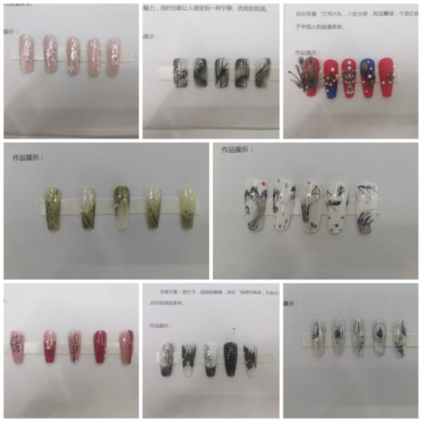这次医学美容技术专业举行的美甲技能比赛不仅检验了美甲课程的实训成果,提升了学生的职业技能水平,培养了学生创新、主动学习的习惯,促进了校企间合作的进程,还增加了学生对于中国传统文化、中国美学的认知,提升了学生的民族自豪感和职业荣誉感。通过比赛,学生进一步认识了美甲师岗位的职责与素养,形成精益求精的职业态度和追求卓越的职业精神,更加深入地理解和感受工匠精神的内涵和价值。