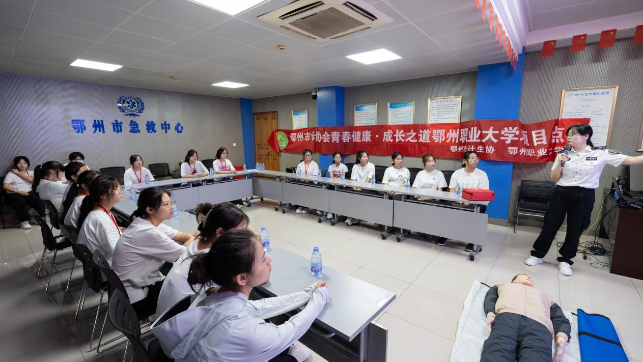 为更好普及应急救护知识,增强自身安全意识和自救互救能力,2024年9月8日上午,鄂州职业大学“健康守护”服务队和青春健康同伴社团来到鄂州市急救中心,鄂州急救中心的老师为志愿者开展了关于应急救护的科普宣讲及技能培训。