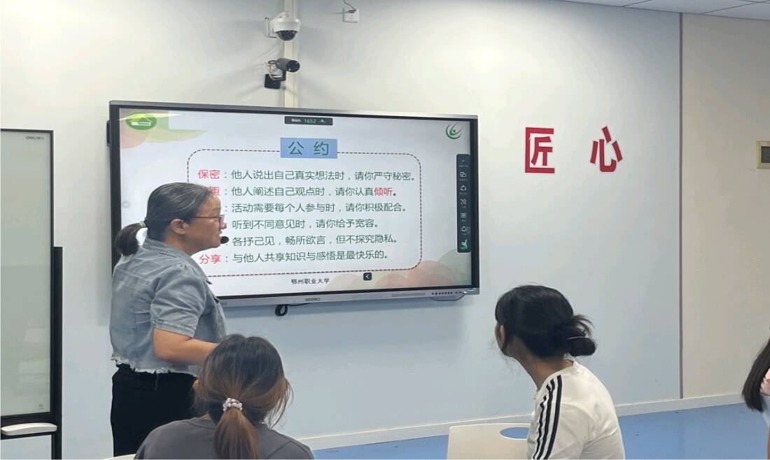 2024年9月26日晚7点,在鄂州职业大学五号楼w区702智慧教室,医学院邱文静老师为学院“青春健康同伴社”学生社团的同学们开展了第一期的主持人培训活动。邱老师今年暑假先后参加了在西安举办的国家级和在荆州举办的省级青春健康工作培训,已顺利结业,对青春健康高校项目的工作颇有见解,是该项目团队的优秀指导老师。