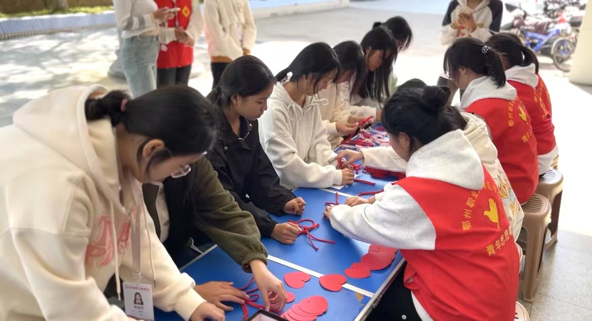 2024年10月30日,鄂州职业大学医学院“健康守护”志愿服务队、医学院传统文化社和东十二栋社区办联合在医学院门口开展“同心结彩,绽放活力”活动,旨在通过手工编织同心结这一独特形式,传承和弘扬中华优秀传统文化,让同学们在感受传统文化魅力的同时,增强家国情怀,提升文化自信。