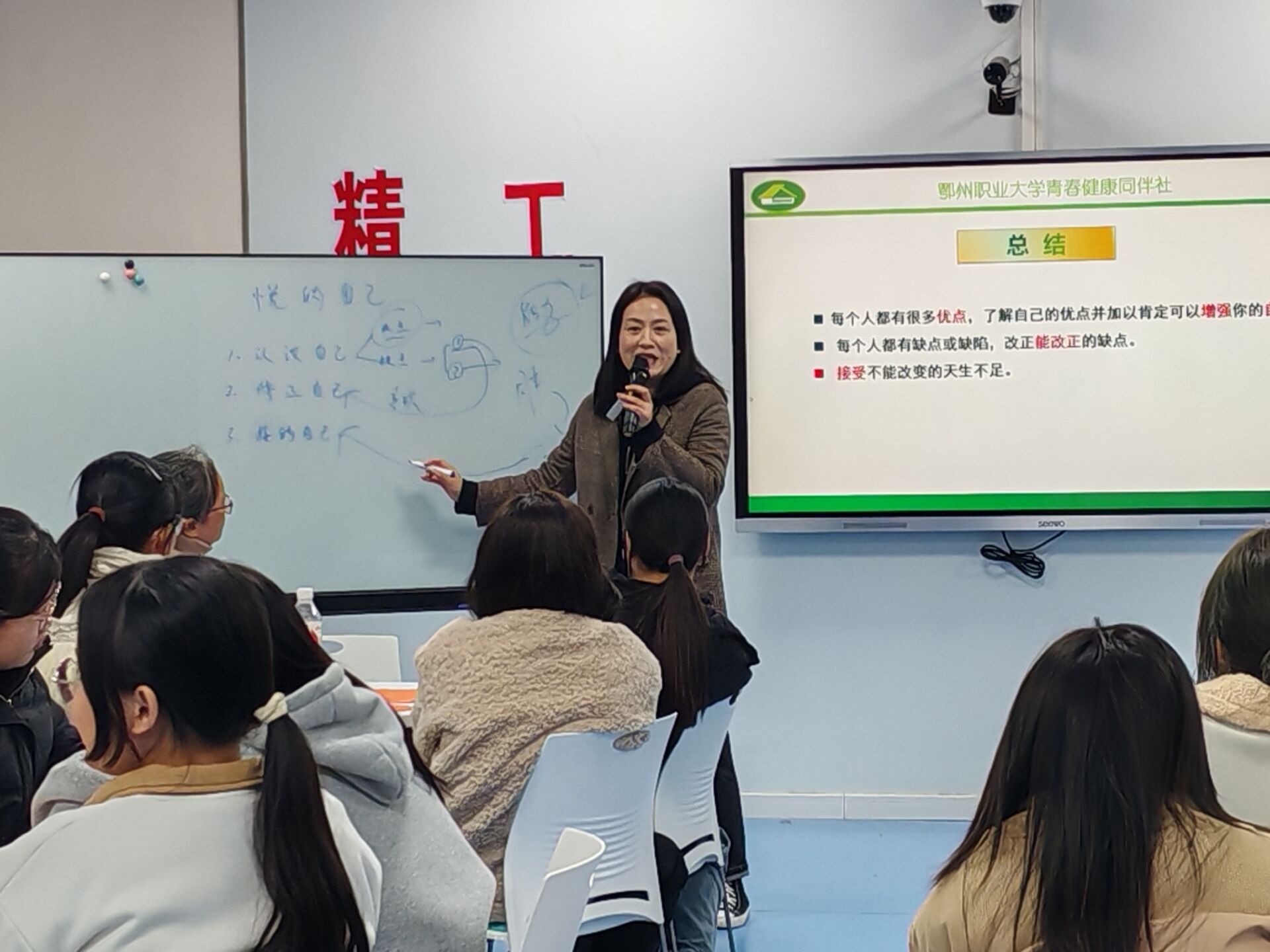 2024年12月5日,我校青春健康高校项目组开展了以“悦纳自我”为主题的同伴教育主持人培训活动,这是今年的第10场同伴教育主持人培训,由医学院汪艳霞院长担任培训教师,培训对象为青春健康同伴社、青年志愿者协会的30余名学生骨干。