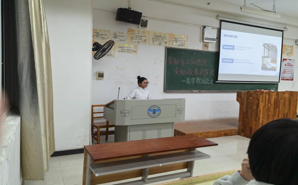 为深入贯彻“三全育人”及“资助育人”实践要求,增强受助学生对党和国家资助事业的认同感与责任感,培养学生感恩、思源、奉献意识和志愿精神,2025年3月31日医学院“一站式”社区在五号楼E604教室成功举办“学生资助宣传大使”竞选聘大赛。本次大赛以“资助育人知感恩,资助政策我宣传”为主题,吸引了众多同学积极参与。