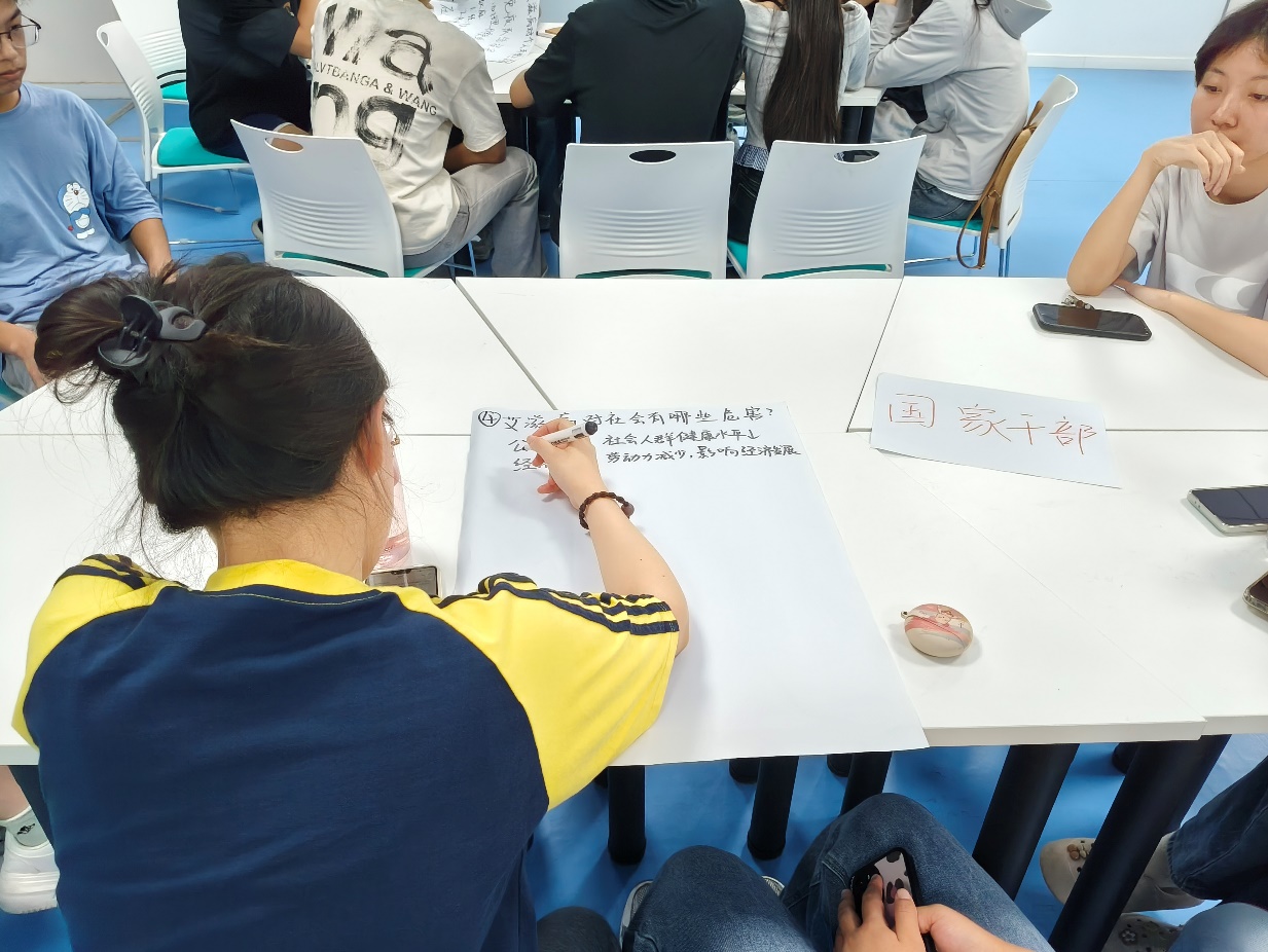 紧接着,极具教育意义的“野火游戏”将活动推向高潮。通过模拟病毒传播的沉浸式体验,同学们亲身感受到了艾滋病病毒在人际网络中的惊人传播速度与隐蔽性。游戏结束后,当看到代表“感染者”的同学数量远超预期时,现场一片寂静。同学们深刻体会到感染者的无助、担忧以及可能面临的污名化压力。这一环节极大地增强了对艾滋病病毒感染者的同理心,也以最直观的方式敲响了警钟,强化了“早检测、早治疗、早预防”的防艾意识。