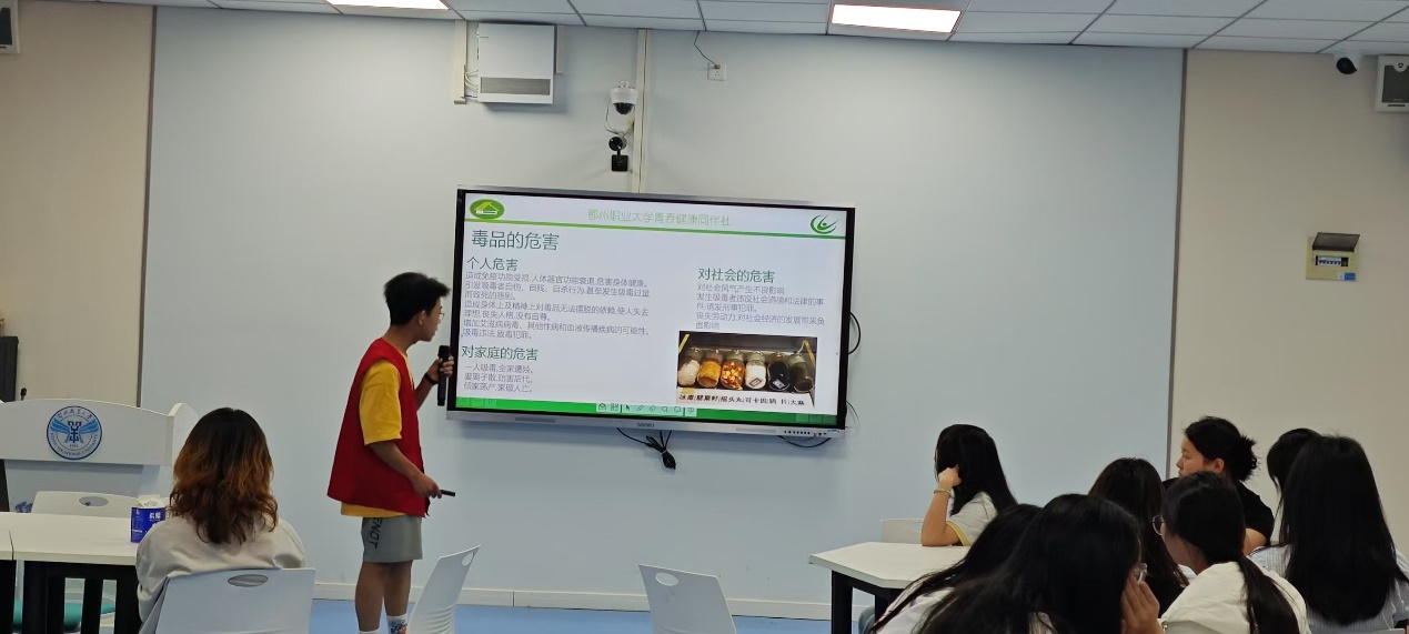 为深入推进国家级青春健康“青铸未来”高校项目,切实增强青年学子识毒、防毒、拒毒的意识和能力,2025年5月29日晚,我校青春健康同伴社成功举办了主题为“拒绝毒品,健康生活”的同伴教育活动。本次活动在社长23级马祥媛同学的指导下,由24级郭世淼同学担任主持人,陈翰卿同学担任助手,吸引了24级老年保健与管理2班全体同学的积极参与,共同为青春健康筑起坚实防线。