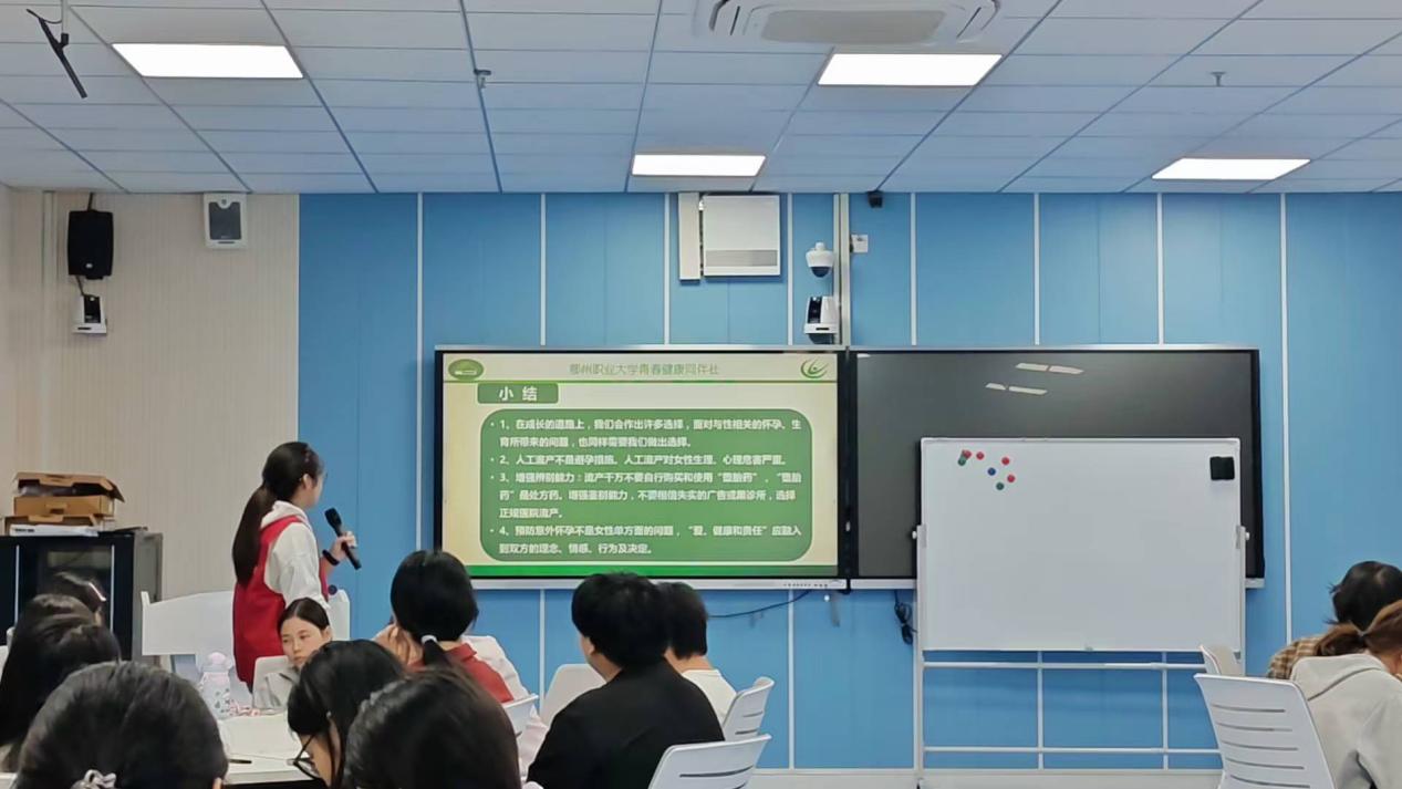 为增强青年学子对意外怀孕的科学认知与应对能力,树立负责任的青春健康观念,2025年9月24日晚,鄂州职业大学青春健康同伴社在五号楼W区7楼智慧教室成功举办“意外怀孕了怎么办”主题同伴教育活动。本次活动由同伴社社长陈翰卿指导,吴博文同学担任主持人,江一慧同学协助,系国家级青春健康“青铸未来”高校项目的重要实践。