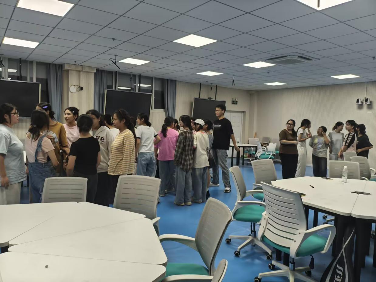 晚上7时,活动在轻松愉快的氛围中正式开始。主持人潘佳盈以“桃花朵朵开”破冰游戏拉开序幕,同学们在欢声笑语中迅速融入活动,现场气氛热烈活跃。
