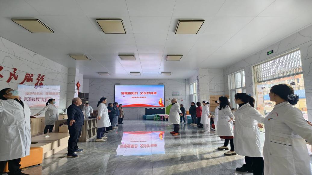 活动现场,气氛热烈,暖意融融。在护理党支部的精心组织下,师生们以饱满的热情拉开了活动序幕。活力四射的开场舞蹈《福气要来到》瞬间点燃现场氛围;接着美小护社团的成员们耐心细致地带领老人们学习简单易学的清肺拍拍操,帮助他们活动肩颈与手臂,传递着青春的温度。随后,趣味十足的手指操《切蔬菜》口令声与老人们整齐划一的动作相映成趣;适配老年群体的舒缓养生操,更是在党员教师的示范带动下,引得老人们认真跟练,脸上洋溢着幸福的笑容。文艺互动环节不仅愉悦了身心,更在欢声笑语中拉近了党组织、青年学子与老年群体的距离。