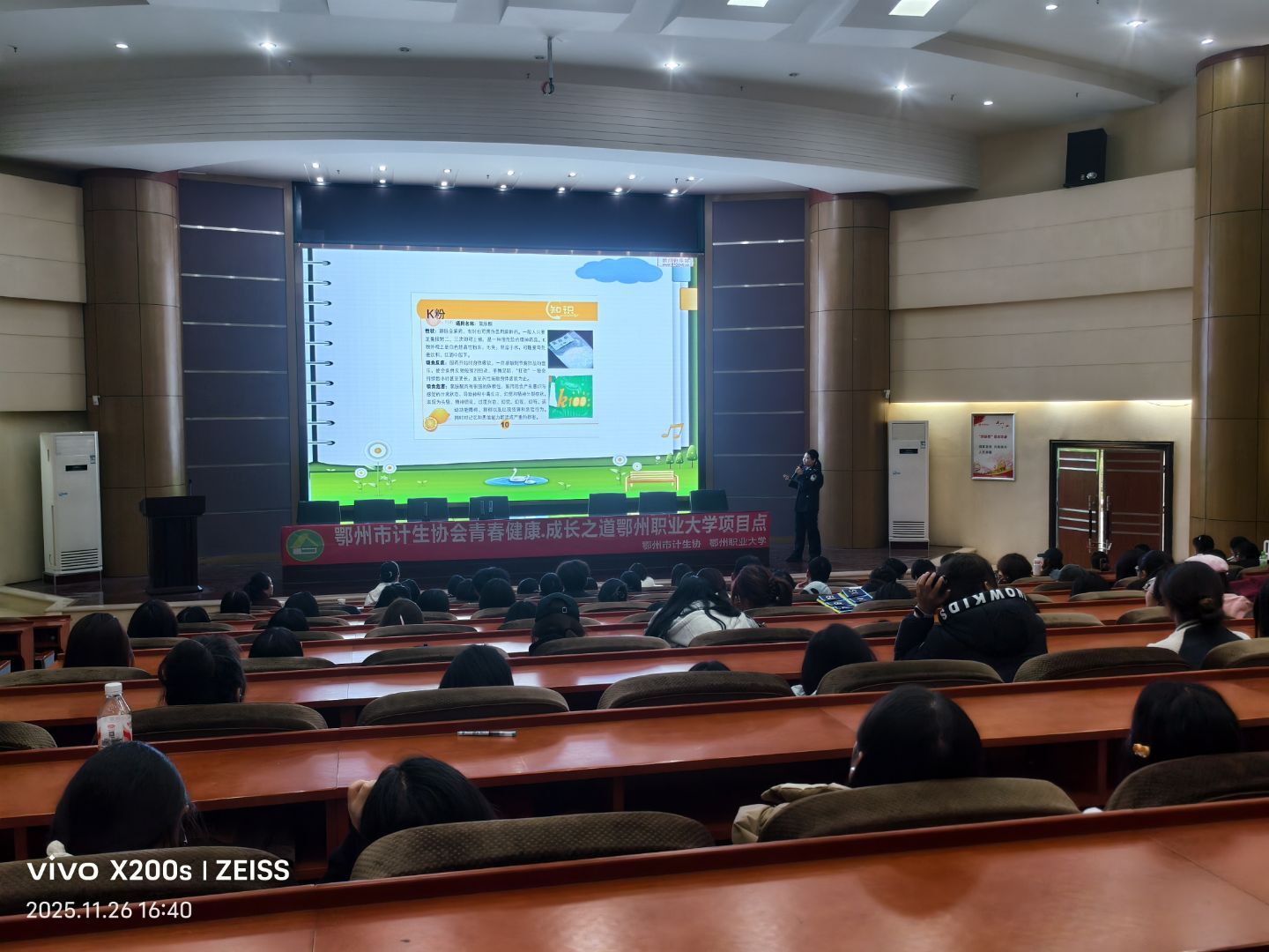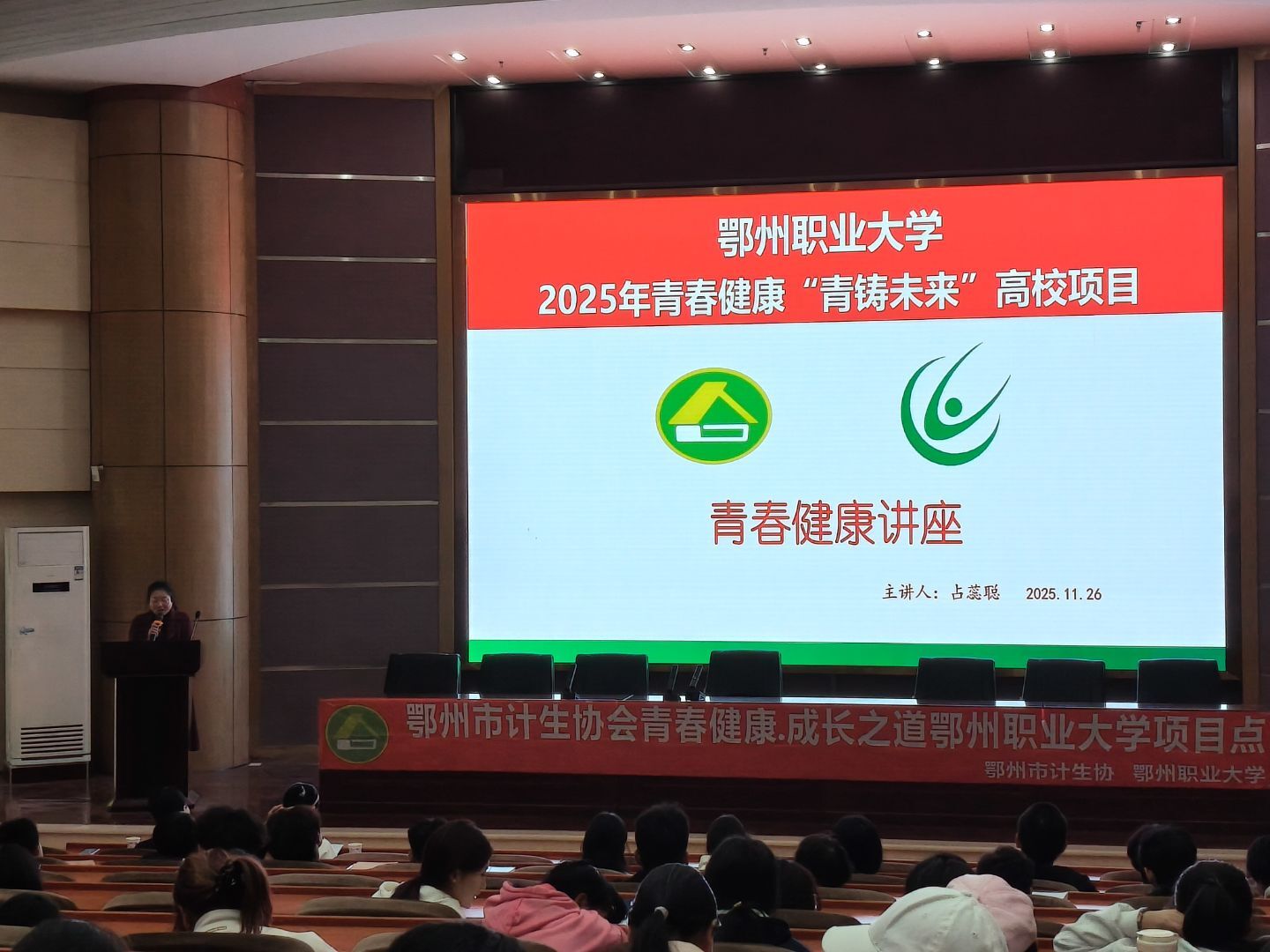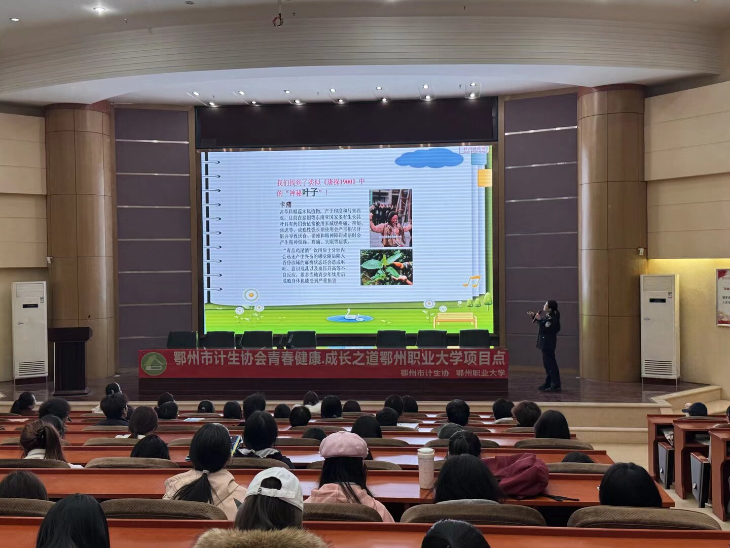 为深入推进校园禁毒宣传教育,增强青年学生识毒、防毒、拒毒的意识和能力,筑牢校园无毒安全防线,11月26日下午,由我校青春健康“青铸未来”项目组策划的“健康人生、绿色无毒”主题禁毒知识讲座在五号楼学术报告厅成功举办。讲座特邀鄂州市公安局禁毒支队占蕊聪警官主讲,医学院党总支副书记洪霜主持,全校200余名学生代表参加学习。
