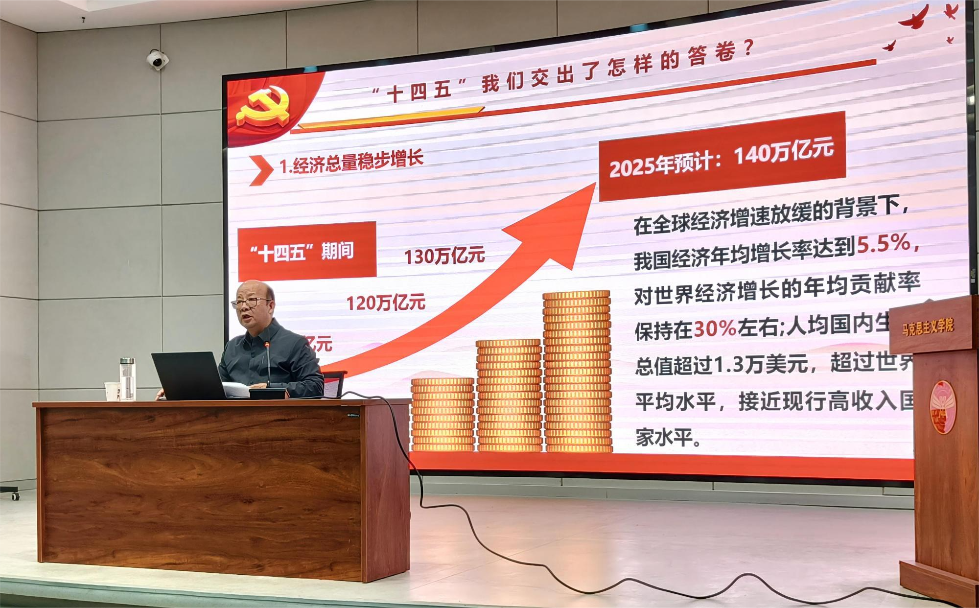 陈适以《深入学习贯彻党的二十届四中全会精神,奋力谱写中国式现代化建设新局面》为题,从深刻认识党的二十届四中全会的重大意义、准确把握全会精神的核心要义、推动全会精神落地见效三个方面为两个学院干部职工作系统深入、鲜活生动的解读。报告中,他全面回顾了“十四五”时期我国各个领域取得的历史性成就,深入分析面临的战略机遇与风险挑战以及推进“十五五”时期经济社会发展的战略任务和重大举措。