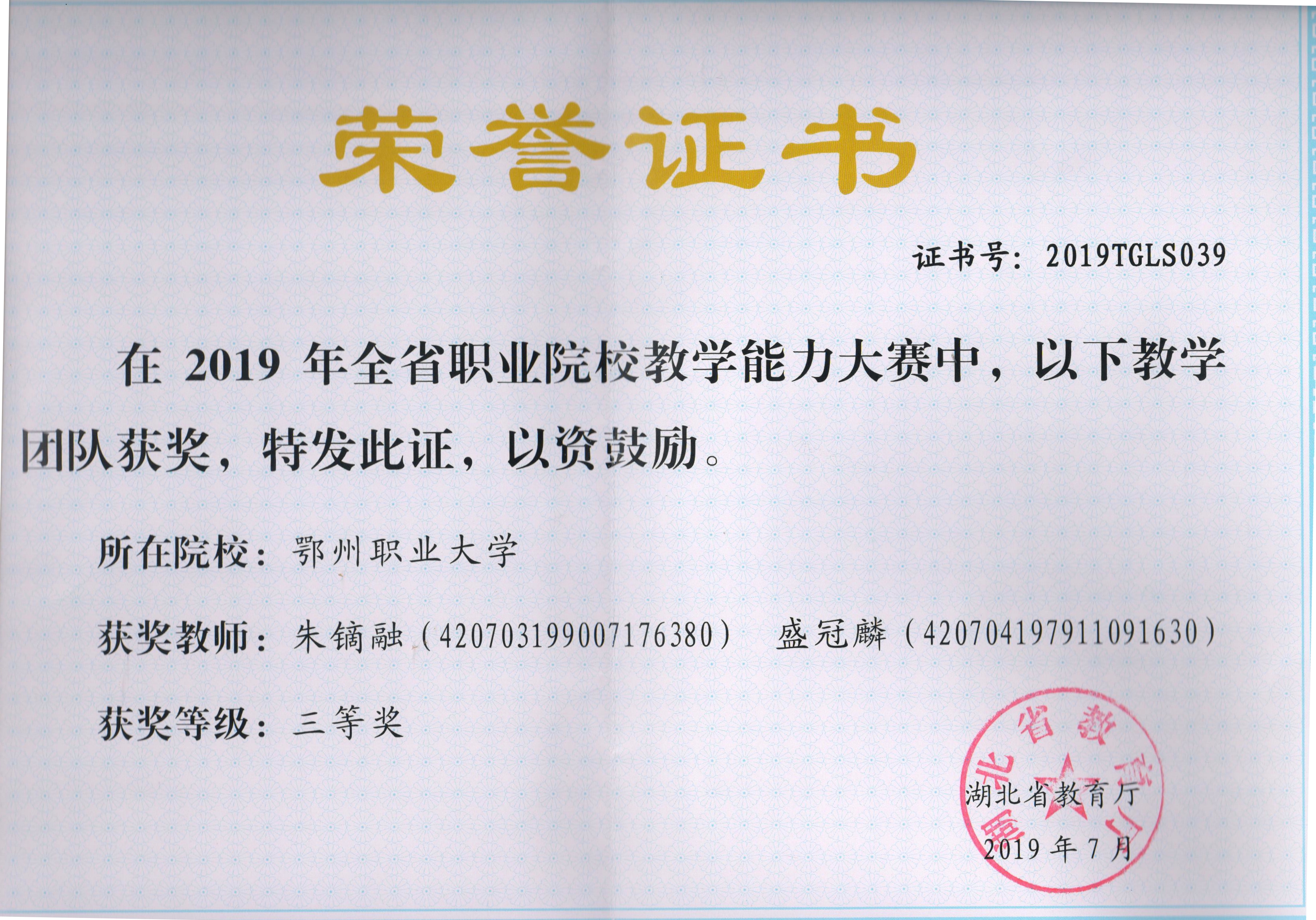 学院拥有一支结构合理的“双师型”教学团队,其中教授4人,副教授35人,楚天技能名师4人,建有湖北省职业技能名师工作室和校级科研创新团队。专业教师教学经验丰富,在多项教学大赛中取得了好成绩,同时指导学生参加国赛,成绩显然,教师团队教科研成果丰硕。