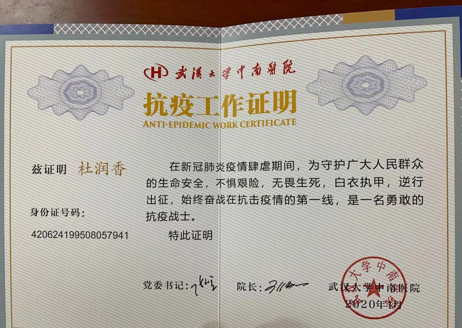 我校助产专业毕业生奋战在抗击疫情第一线工作证明