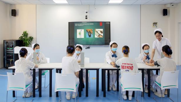 涉外护理是培养德、智、体、美、劳全面发展,面向国内外各级医院及医疗保健机构,具有国际视野及现代护理综合素质,掌握先进护理理念、人文社会科学、医学基础、预防保健及护理学知识,系统掌握公共英语、护理专业英语和跨文化护理等基础知识,具备用双语与服务对象交流沟通、运用护理程序为服务对象提供整体护理的能力,能够在国内外从事临床护理、社区护理、家庭护理及老年院护理工作的高素质复合型国际护理人才。学院师资雄厚,教师学历层次高,教学与实践经验丰富,智慧教室、虚拟仿真实训室等信息化设备运用进一步促进学生的成长成才。
