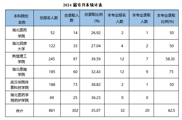 2. 专升本通过率高 本专业注重学习职业发展,从学生到校报到开始指导学生做好 三年规划,对有专升本意向的同学全方位引导,包括报考选择、复习备考等,本专业学生升 本率远远超过全省康复治疗技术专业升本的平均水平。2024 年的具体如下: