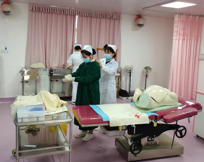 助产专业校内实训中心建筑面积4500平方米,建有模拟产房、妇产科护理、儿科护理、营养护理、护理评估室、外科手术室、重症监护、心肺复苏、创伤急救和形体训练室等实训室。2019年学校投入65万元用于本专业模拟产房等实训室的建设,购买了先进的实训设备,并模拟医院的真实工作环境,进行了场地维修,实训条件已达到省内领先水平,为培养学生的职业能力和职业素质创造了良好条件。