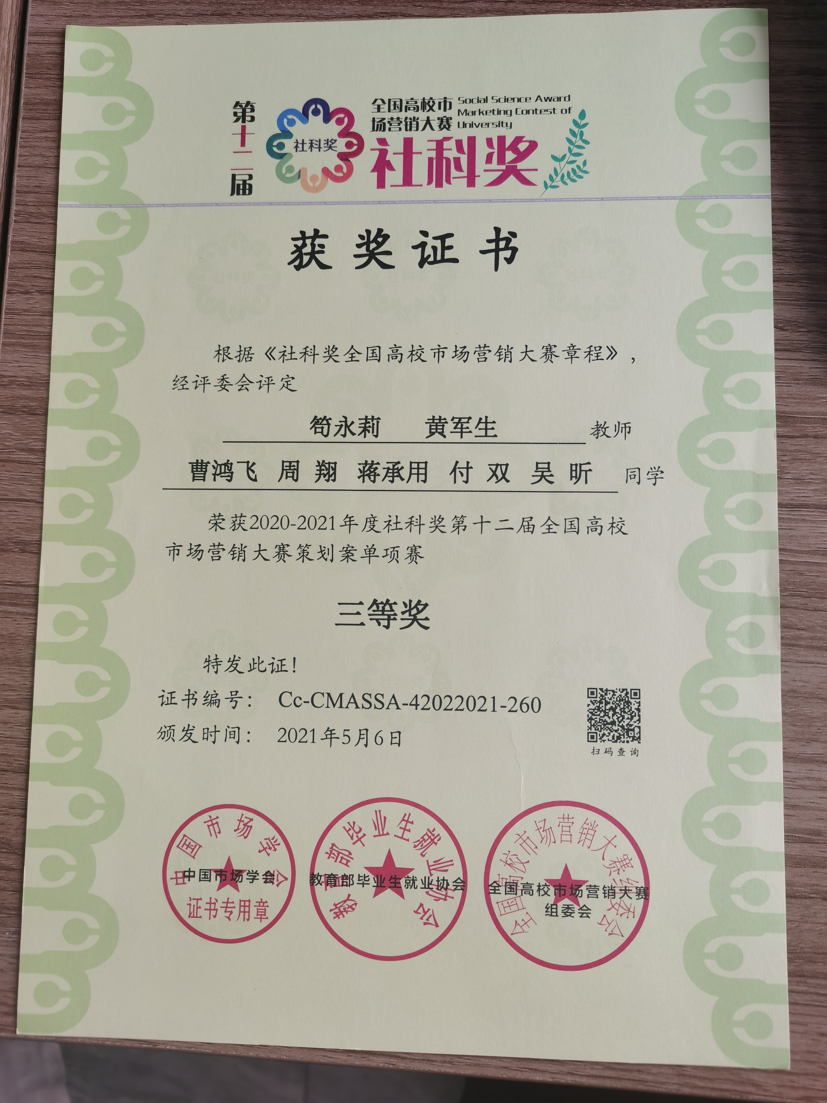 市场营销专业教学团队以扎实的专业知识,兢兢业业的工作态度,不断取得优异成绩。专业老师获得省职业院校教学能力大赛三等奖、多次获得校级教学设计比赛奖项、优秀辅导员等荣誉称号;指导学生比赛中,获得省职业院校市场营销技能赛项比赛二等奖,多次获全国高校市场营销大赛二等奖、三等奖,;参与多部教材的编订,主持多项省级、校级科研项目,发表多篇专业期刊论文。