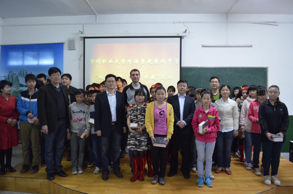 为了深入开展党的群众路线教育实践活动,加强外语人才培养模式与专业建设的调研,关爱农村留守儿童的健康成长,2014年4月25日,鄂州职业大学外语系师生奔赴东沟中学,开展了“城乡互联、结对共建”系列活动。