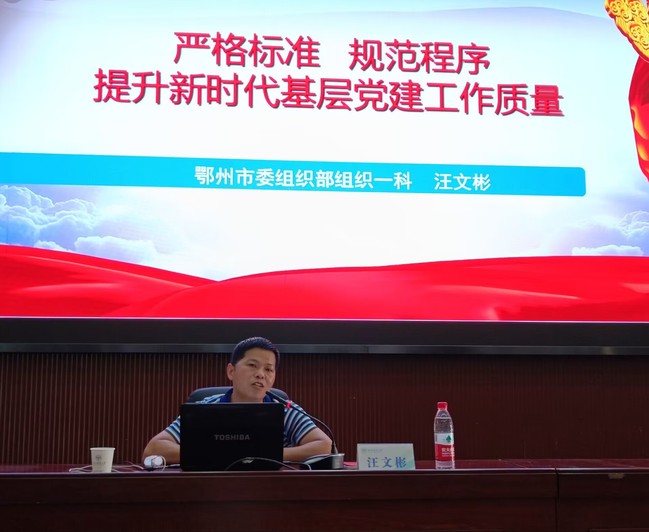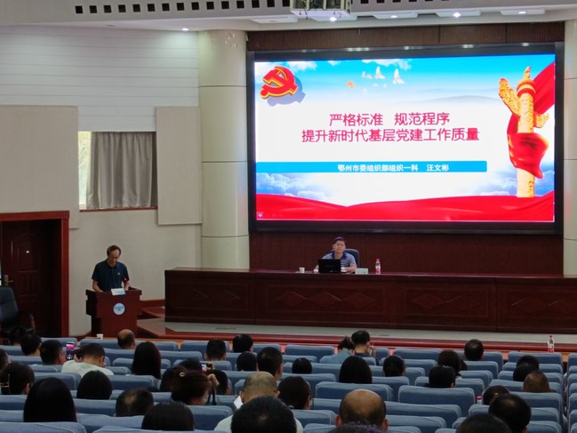 (通讯员:杨柳)为进一步提升我校党务工作者从事党建业务工作的能力和水平,推动基层党支部标准化、规范化建设,增强各级党组织政治功能和组织力,7月13日上午,校党委组织部邀请市委组织部组织一科副科长汪文彬同志来校,以“严格标准、规范程序,提升新时代基层党建工作质量”为主题进行专题党建相关知识培训。培训会由组织部蔡仲儒部长主持,全校党总支委员、各支委委员近200人参加了本次培训。此次培训是我校2023年师德集中学习教育暨干部提能培训活动之一。
