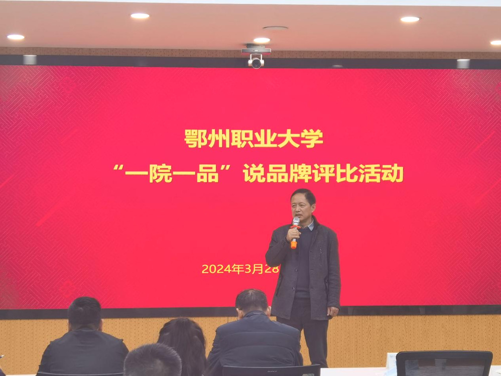 [组织部 尹洪峰报道]3月28日晚,鄂州职业大学2024年党建“一院一品”说品牌评比活动在图书馆一楼2号会议室举行。校党委副书记王家绪出席了本次活动并做了重要讲话,校党政部门负责人、各级党组织书记参加了此次活动。