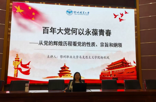 本次培训开班第一讲由马克思主义学院杨秋凤教授授课,杨教授以其深厚的专业知识,引导学员深入探讨“百年大党如何保持青春活力”;她带领党员发展对象回溯党的辉煌历程,深刻解析党的性质、宗旨、纲领以及中国共产党人始终不变的初心和使命。通过她的讲授,学员们更加坚定了对党的信仰,增强了为党的事业奋斗的决心。