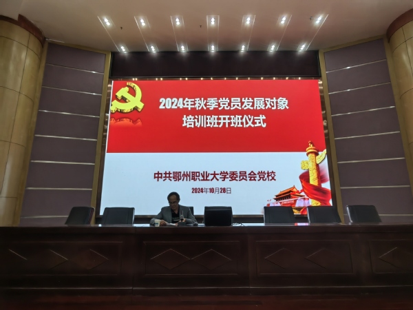 (通讯员:周依圣、毛秀)2024年10月28日晚上7点,鄂州职业大学2024年秋季党员发展对象培训班开班仪式在主教学楼二楼学术报告厅隆重举行。校党委组织部部长蔡仲儒出席了本次开班仪式并作动员讲话。