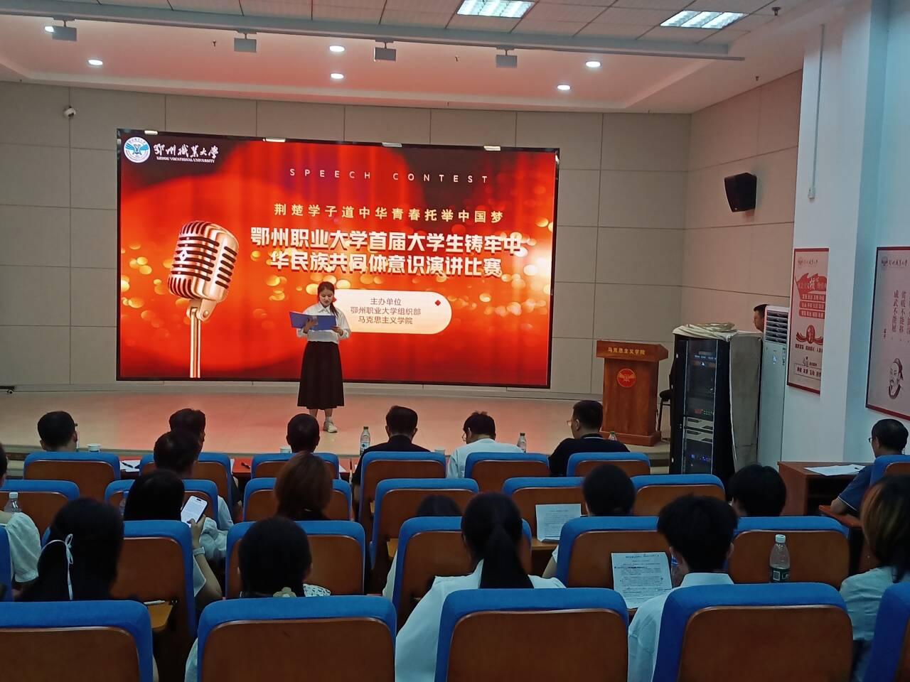 为全面落实习近平总书记考察湖北重要讲话精神,深入展示在校学生中华民族多元一体内涵和中华文化基因,鼓励在校大学生讲好中华民族共同体故事、中华文化故事、各民族文化交流交融互鉴故事,为建设长江文化高地、构建中华民族共有精神家园和加快建成中部地区崛起的重要战略支点贡献力量,同时为参加省教育厅演讲比赛做准备,中共鄂州职业大学委员会组织(统战)部会同马克思主义学院于2025年5月13日在马克思主义学院学术报告厅举办了首届“荆楚学子道中华青春托举中国梦”大学生演讲比赛。党政办主任秦科、纪委副书记黄治勇、党委组织(统战)部部长蔡仲儒等7位部门领导出席并担任评委。