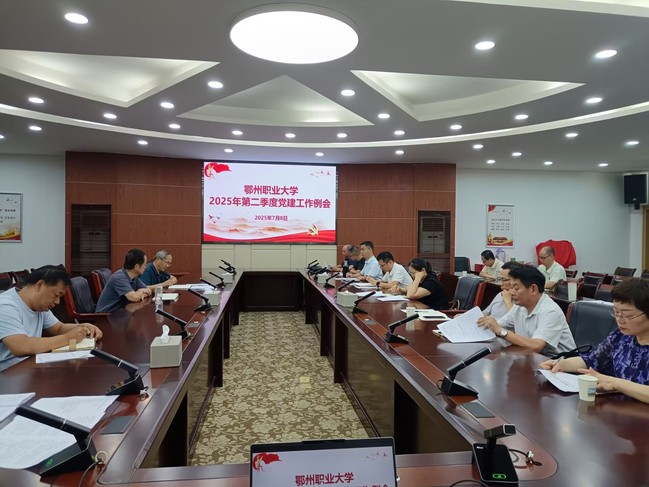(通讯员 杨柳)为深入学习贯彻习近平新时代中国特色社会主义思想和中央八项规定精神,扎实推进“一融双高”建设,7月8日上午,鄂州职业大学在图书馆一楼1号会议室召开2025年第二季度党建工作例会。校党委副书记王家绪同志出席会议并讲话,各党总支、直属党支部书记参加会议。会议由组织部蔡仲儒同志主持。